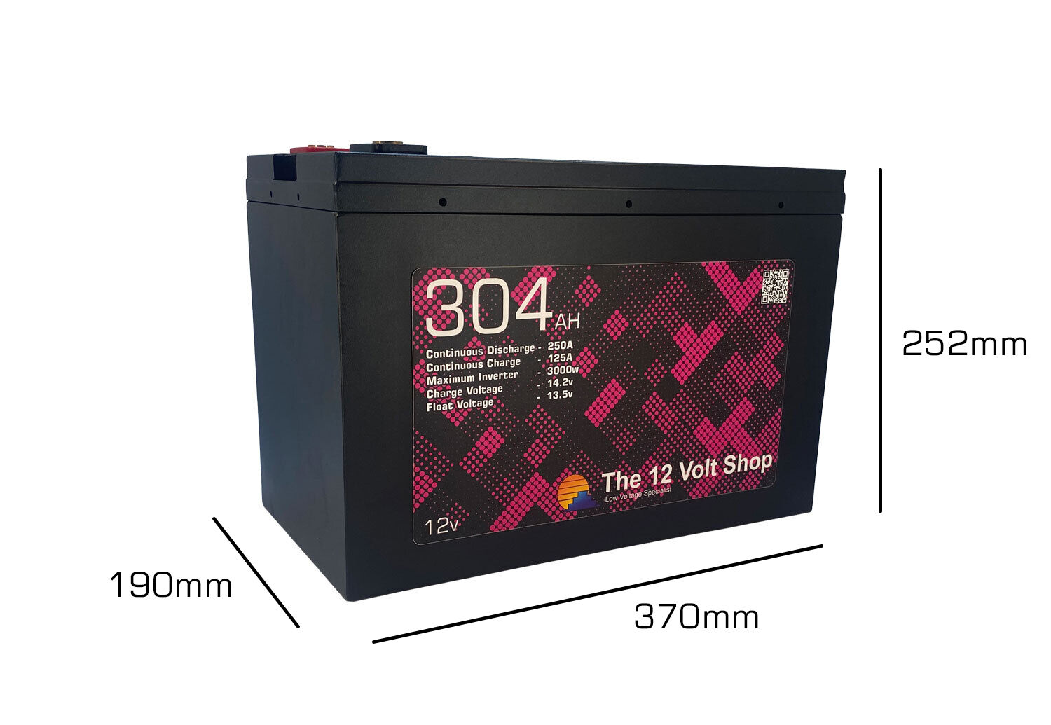 Prepare to be astonished by the 304M's incredibly efficient design. At just 370mm (L) x 190mm (W) x 252mm (H) (370mm with terminals) and weighing a manageable 28kg, this 304Ah battery is dramatically smaller than other 300Ah alternatives. In fact, it's only slightly larger than a typical 120Ah AGM battery! This means you gain more than double the usable power in a similar footprint, freeing up critical space in your caravan, RV, boat, or off-grid cabin.