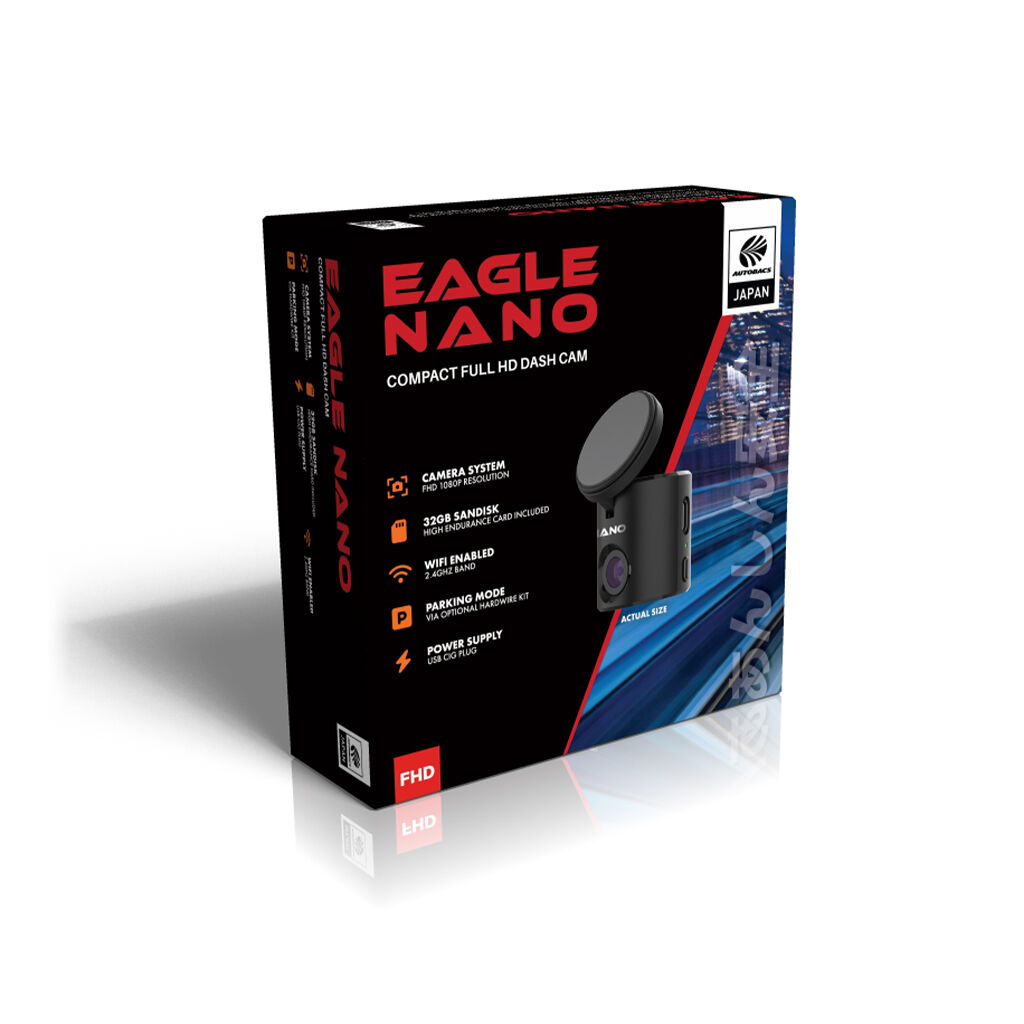 Introducing the EAGLE NANO, a compact full HD dash cam designed for discretion and your peace of mind. It captures high-quality recordings of road incidents, ensuring that every detail is accurately documented.