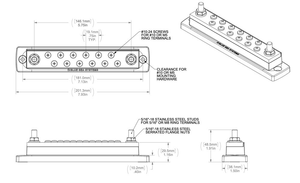 Terminal Type #10-24 Screw / 5/16"-18 Stud