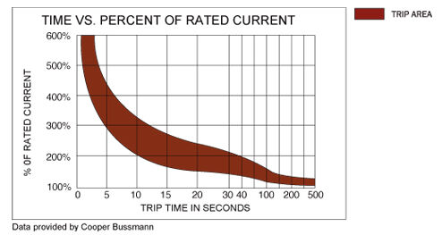 Manual reset circuit breakers will open the circuit on overload and will remain open until the user presses the yellow trip lever back into the housing of the circuit breaker. This circuit breaker can also be manually switched off by pressing the red Push-to-Trip button.