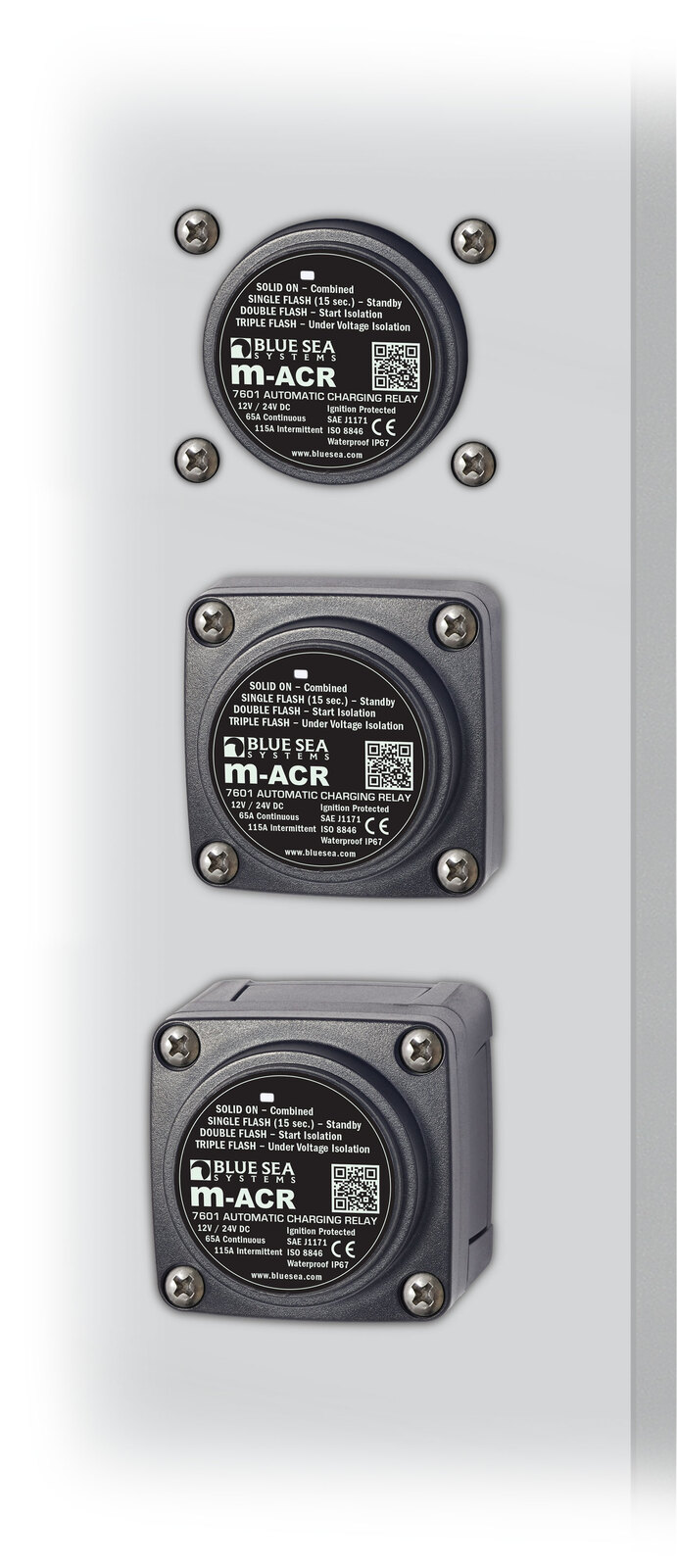 The Mini Automatic Charging Relay (M-ACR) is designed to manage the charging current from alternators up to 65 Amps found on most outboards and many inboard engines.