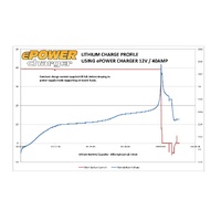 The Enerdrive ePOWER charger can be programmed for Lithium batteries. This setting delivers the full rated output of the charger constantly with the charger switching to power supply mode once the voltage peak is met (indicating a full battery bank). The graph shows the ePOWER charger algorithm perfectly supporting Lithium battery requirements.
