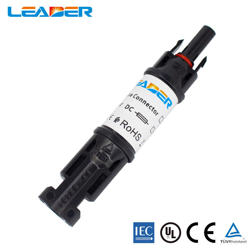 LEADER® pv inline fuse is used for safe and simple series or parallel connecting solar PV modules, inverters, or solar power plant systems. Certification with TUV/UL/IEC/CE standards, suitable for Ø2.5-Ø16mm² photovoltaic solar cables. The connector design is based on the 25-year working lifetime of the photovoltaic power station and has long-term stable electrical contact performance.