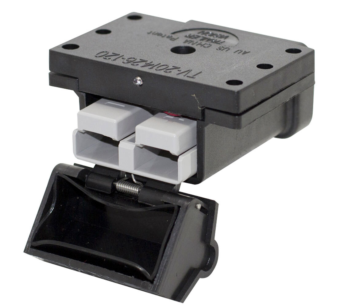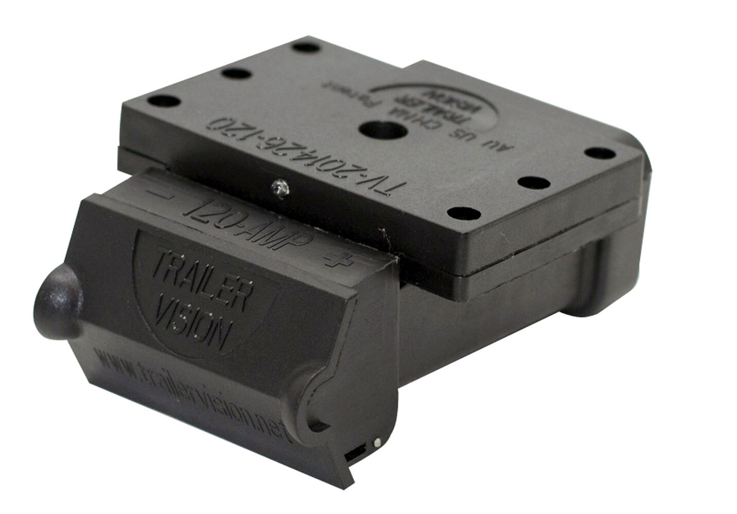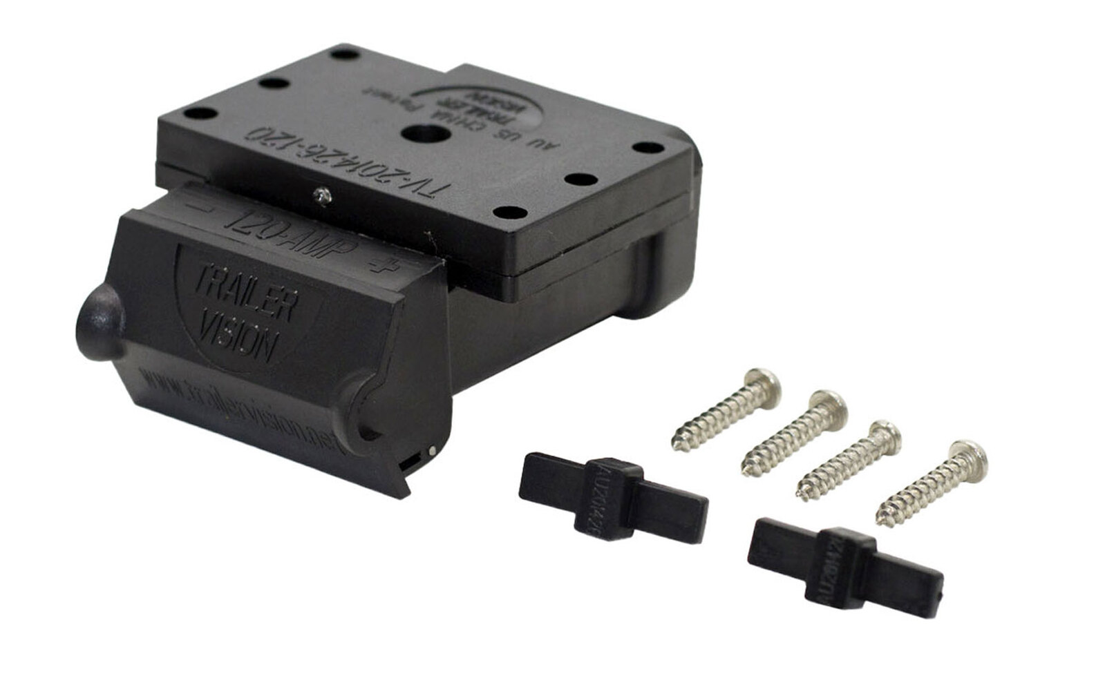 Trailer Vision’s black cover for Anderson 120a connectors has multiple attachment points for easy surface mounting to towbars, brackets for horizontal mounting, or walls and panels for vertical mounting. This model also features a Red LED power sensor.