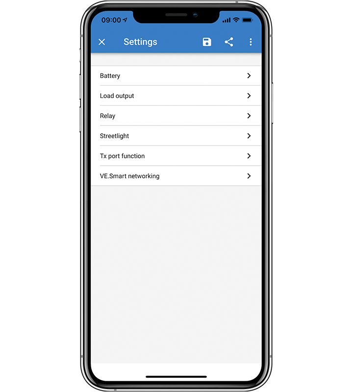 | Data communication port | VE.Can, VE.Direct or Bluetooth |