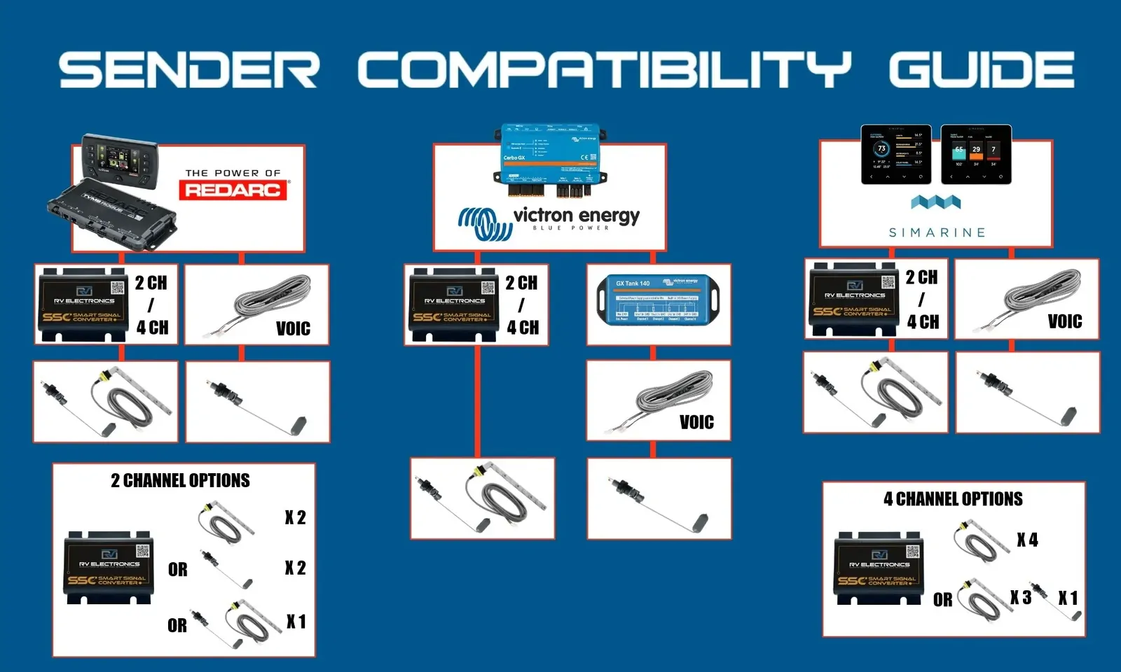 We have connection guides tailored to the Victron GX Tank 140 the Redarc Rogue or the Simarine SC303/503 here